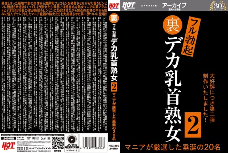 熟成しきった崩壊寸前の肉体から濃厚牝フォロモンを発散させながら乳首をビンビンに勃起させ逝きまくってしまう熟女たち!業界では超有名な熟女マニアの某アダルトビデオ会社社長の彼が股間をビンビンに勃起させながら数百の素材の中から悩みに悩んでセレクトしたマニア垂涎の熟女たちを大集結させた第二弾ついに登場!